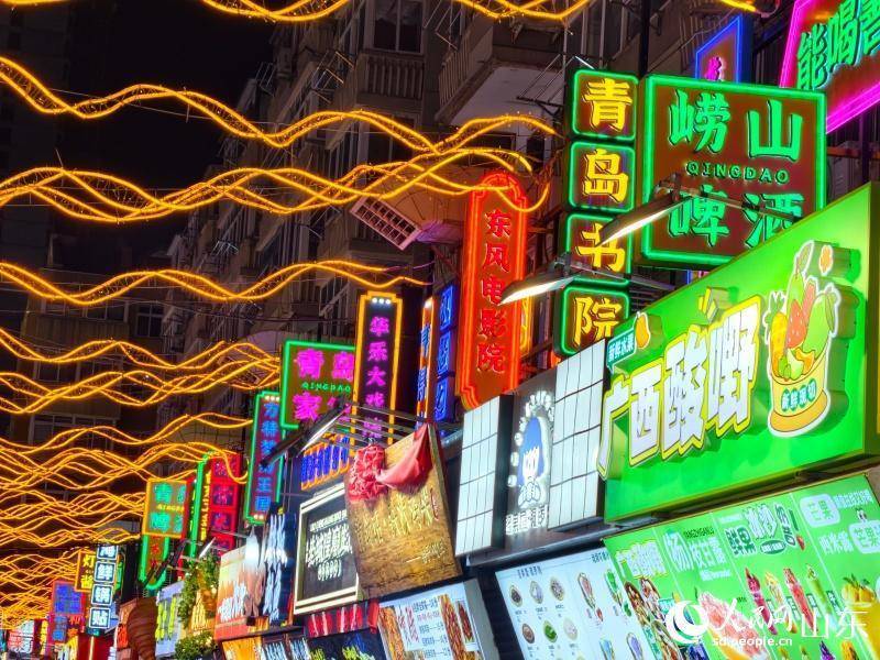 人民网青岛4月21日电 (记者刘颖婕)夜幕降临,华灯初上,青岛台东步行街灯火璀璨,人流如织。升腾的烟火、热闹的吆喝、缤纷的霓虹交织在一起,勾勒出人气满满的夜间消费图景,也让百年老街在夜色中焕发新活力。