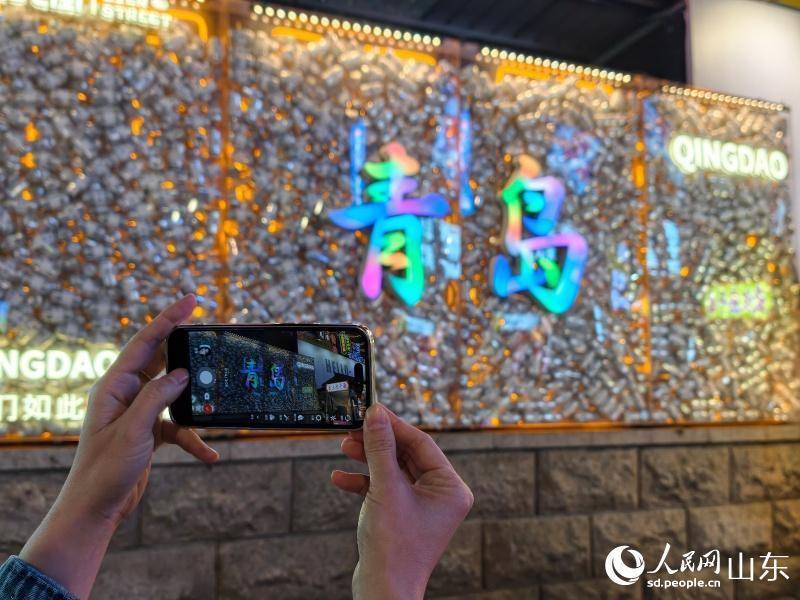 街区霓虹招牌错落有致,处处融入青岛特色元素。人民网记者 刘颖婕摄