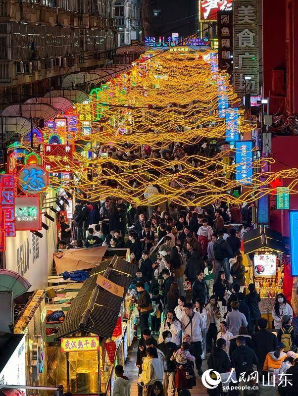 霓虹灯光与烟火气交织成一幅热闹的夜生活画卷。人民网记者 刘颖婕摄